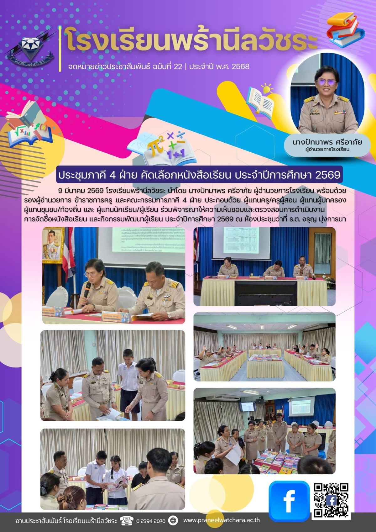 9 มีนาคม 2569 โรงเรียนพร้านีลวัชระ นำโดย นางปัทมาพร ศรีอาภัย ผู้อำนวยการโรงเรียน พร้อมด้วย รองผู้อำนวยการ ข้าราชการครู และคณะกรรมการภาคี 4 ฝ่าย ประกอบด้วย
