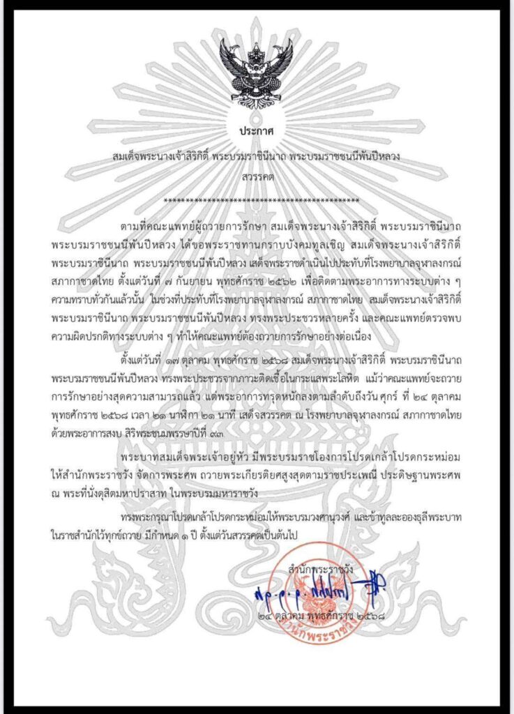 ขอน้อมรำลึกในพระมหากรุณาธิคุณสมเด็จพระนางเจ้าสิริกิติ์ พระบรมราชินีนาถ พระบรมราชชนนีพันปีหลวง