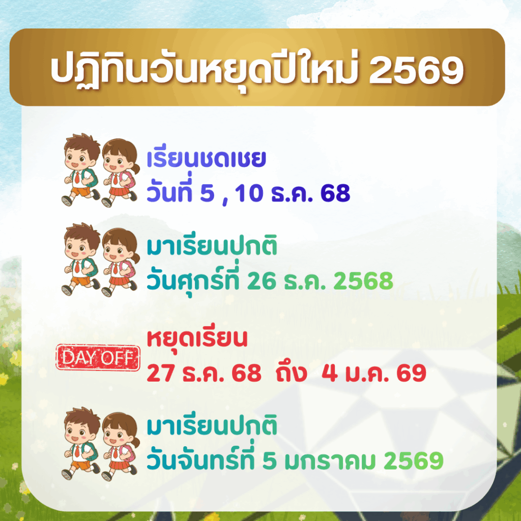 ตาม คณะรัฐมนตรีเห็นชอบให้วันที่ 2 เดือน มกราคม พ.ศ. 2569 เป็นวันหยุดราชการเพิ่มเป็นกรณีพิเศษ โรงเรียนพร้านีลวัชระเล็งเห็นความสำคัญของสถาบันครอบครัวและการให้โอกาสในการใช้เวลาร่วมกันในช่วงเทศกาลปีใหม่ รวมถึงปัญหาด้านการจราจรและความปลอดภัยของนักเรียน ผู้ปกครอง ครูและบุคลากรทางการศึกษาของโรงเรียนพร้านีลวัชระ โดยมุ่งหวังที่จะลดความเสี่ยงและป้องกันอันตรายจากการเดินทาง เพื่อให้การดำเนินการดังกล่าวเป็นไปด้วยความเรียบร้อย